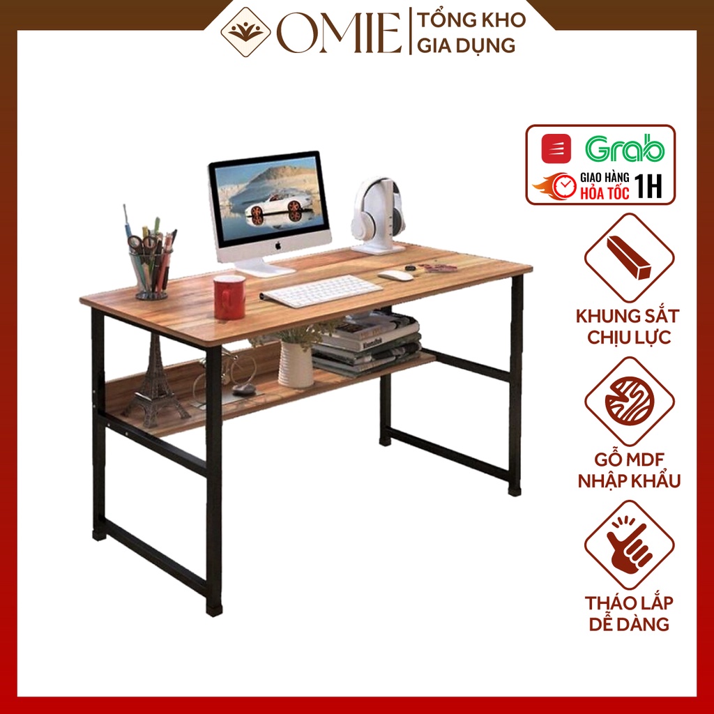 Nhà cửa & Đời sống > Nội thất > Bàn || Bàn làm việc kèm kệ lửng OMIE bàn học bằng gỗ MDF chống mối mọt, khung sắt thép sơn tĩnh điện cao cấp chắc chắnCòn hàng