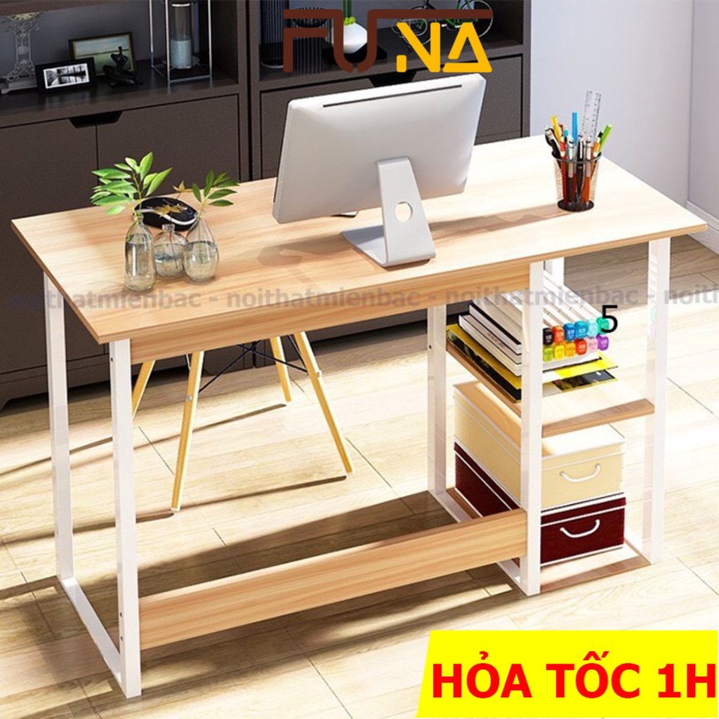 Bàn làm việc kèm kệ sách trái FUNA khung sắt sơn tĩnh điện mặt gỗ MDF cao cấp bàn có định vị sẵn các liên kết