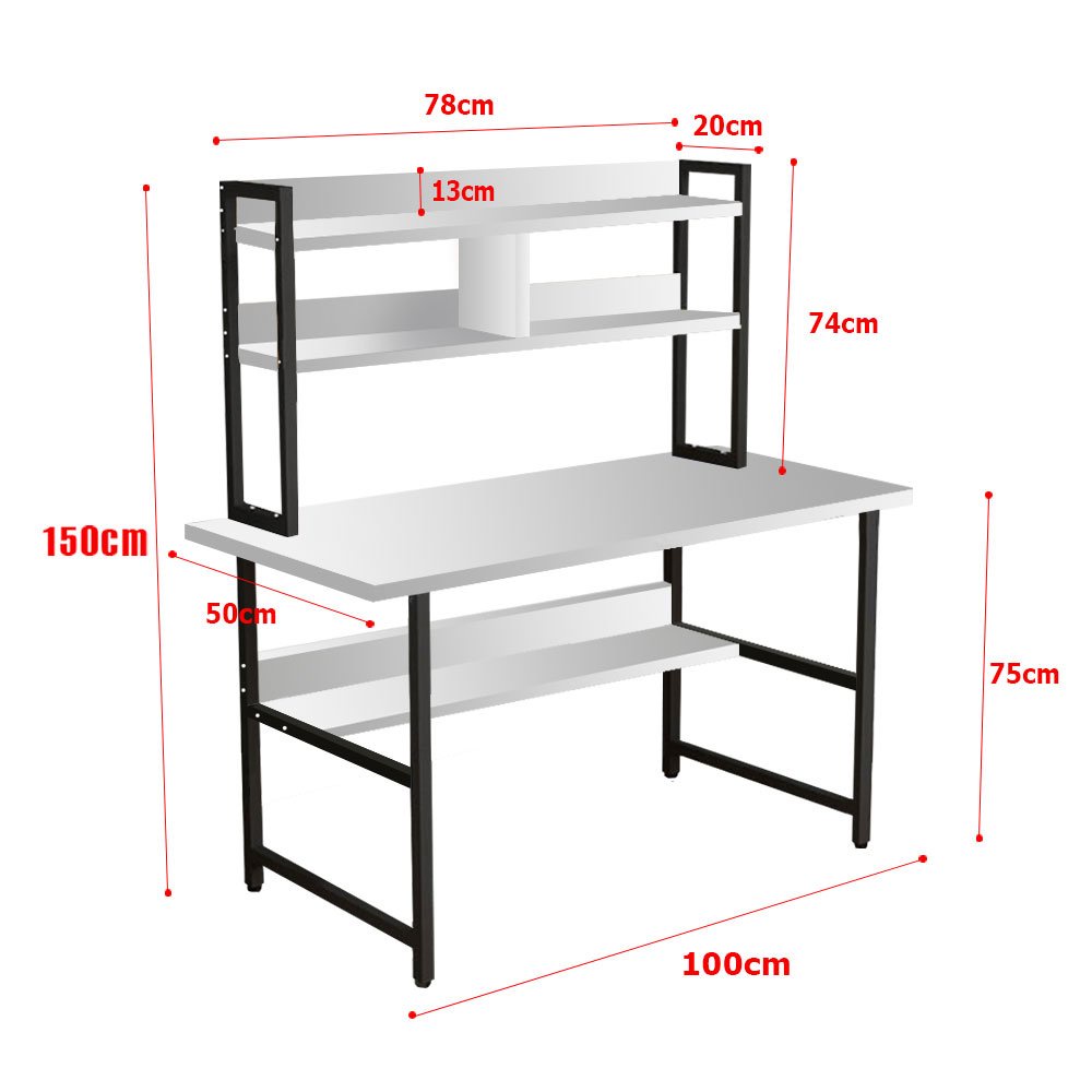Bàn làm việc khung sắt kèm giá sách trên mặt bàn dễ dàng lắp ráp, khung sắt sơn tĩnh điện chắc chắn cùng mặt bàn dày17mm