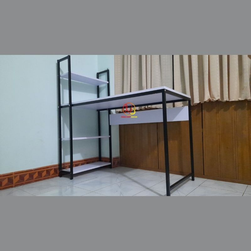 BÀN LÀM VIỆC BÀN HỌC KÈM GIÁ SÁCH - HÀNG LẮP RÁP - ĐẸP - GIÁ RẺ - CHẤT LƯỢNG CAOBàn làm việc, bàn học kết hợp với giá sách là một trong những mẫu bàn được nhiều người ưa chuộng hiện nay bởi thiết kế rất trẻ trung,tiện dụng và hiện đại. Không chỉ vậy, nếu biết cách sắp xếp, bàn làm việc kèm kệ sách còn là món đồ nội thất giúp không gian nhà bạn thêm ấn tượng và sống động hơn. Bàn làm việc khung sắt kèm giá sách sơn tĩnh điện chịu lực cao, bàn vi tính hoặc bàn học, làm việc lắp ráp dễ dàng và vô cùng chắc chắn.
