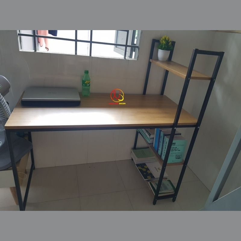 Bàn làm việc khung sắt kèm giá sách sơn tĩnh điện chịu lực cao, bàn vi tính hoặc bàn học, làm việc lắp ráp dễ dàng
