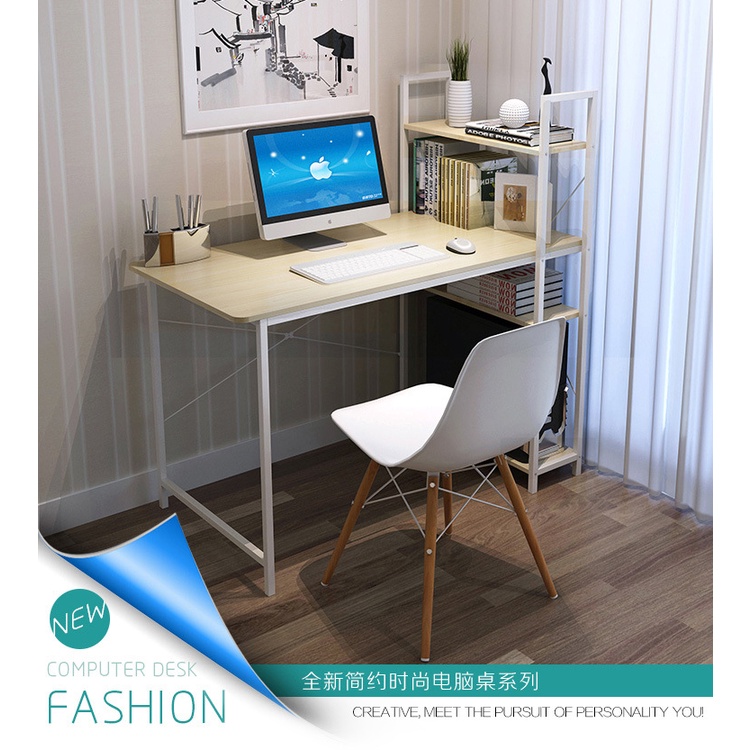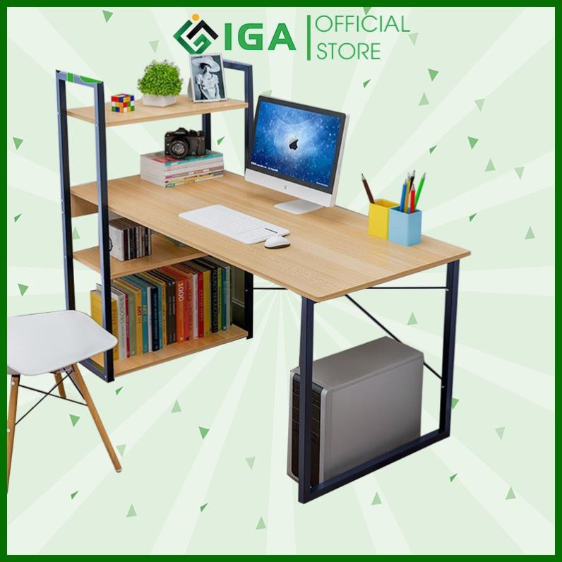 Bàn làm việc khung sắt kèm giá sách sơn tĩnh điện chịu lực cao, bàn vi tính hoặc bàn học, làm việc lắp ráp dễ dàng-GM12
