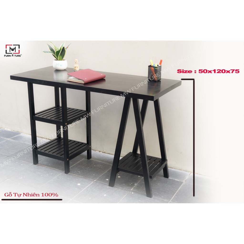 Nhà cửa & Đời sống > Nội thất > Bàn || Bàn làm việc lắp ráp gỗ thông tự nhiên 100% thương hiệu MW FURNITURE size 50x120x75 cm màu đenCòn hàng