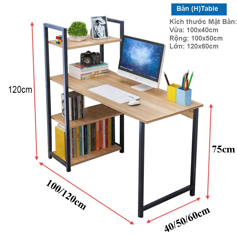 Bàn làm việc liền giá sách dùng để học tập, làm việc, để máy tính, chân sắt sơn tĩnh điện chắc chắn