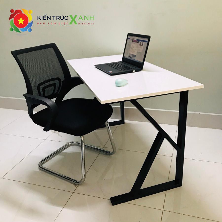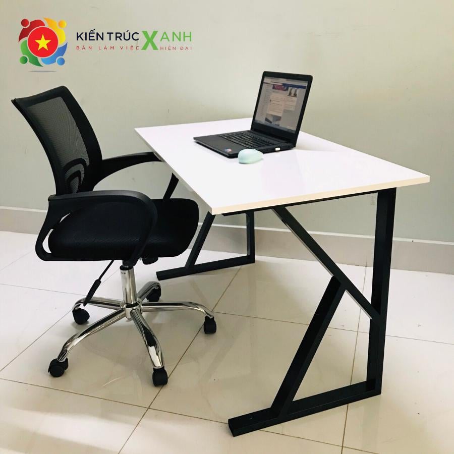 Bàn làm việc mẫu chân chữ K lắp ráp (R60*D120*C75CM) mặt gỗ MDF TRẮNG dày 17mm chân sắt chắc chắn