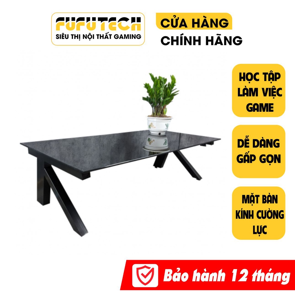 Bàn Làm Việc Ngồi Bệt 120x60x35 Cm Mặt Kính Cương Lực 8 Li Khung Chân Gấp Gọn