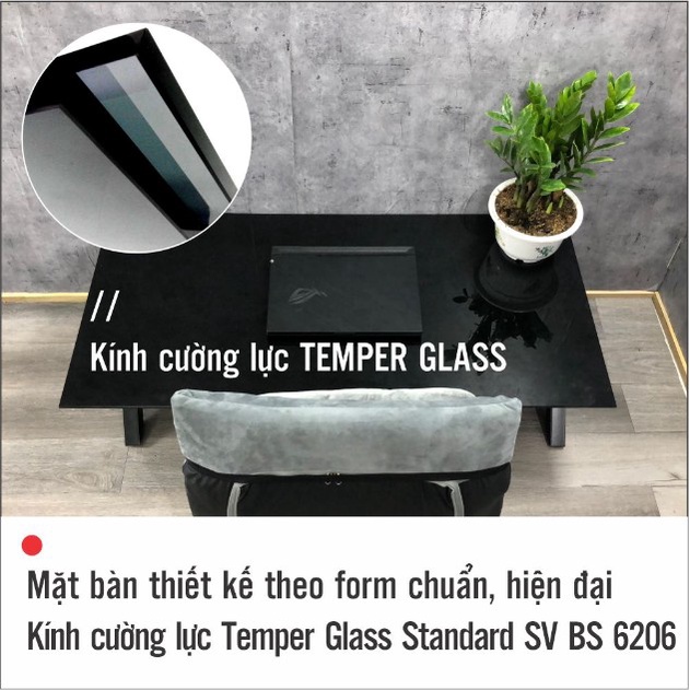 - Mặt bàn sử dụng kính cường lực có độ dày 8 li, chống nước, chống ẩm tốt, độ bền cao.