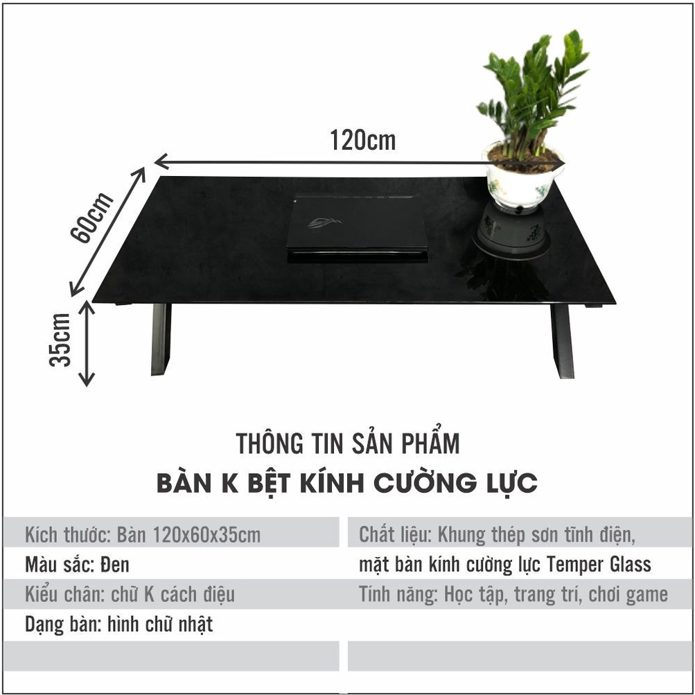 Giới thiệu Bàn Làm Việc Ngồi Bệt 120x60x35 Cm Mặt Kính Cương Lực 8 Li Khung Chân Gấp Gọn