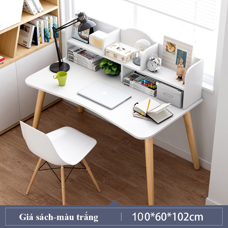 - Bàn màu trắng có giá sách: 100x60x102cm