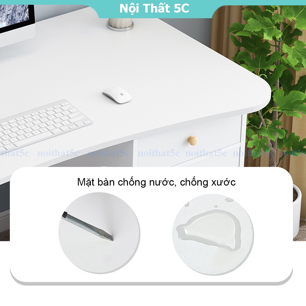 Bàn làm việc phong cách Bắc Âu có hộc tủ chân gỗ tự nhiên, bàn học kèm gia sách chất liệu gỗ MDF cao cấp