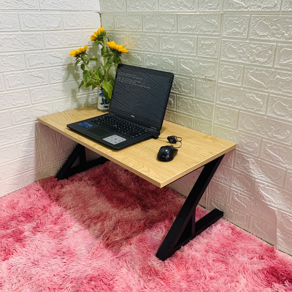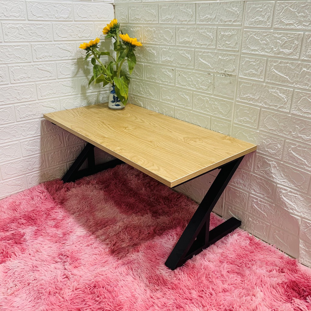 Bàn làm việc (R40*D80*C35cm) chân sắt chữ Z gấp bệt {GIÁ TẠI XƯỞNG} mặt gỗ MDF NHẬP KHẨU màu vàng vân gỗ sồi dày 17mm