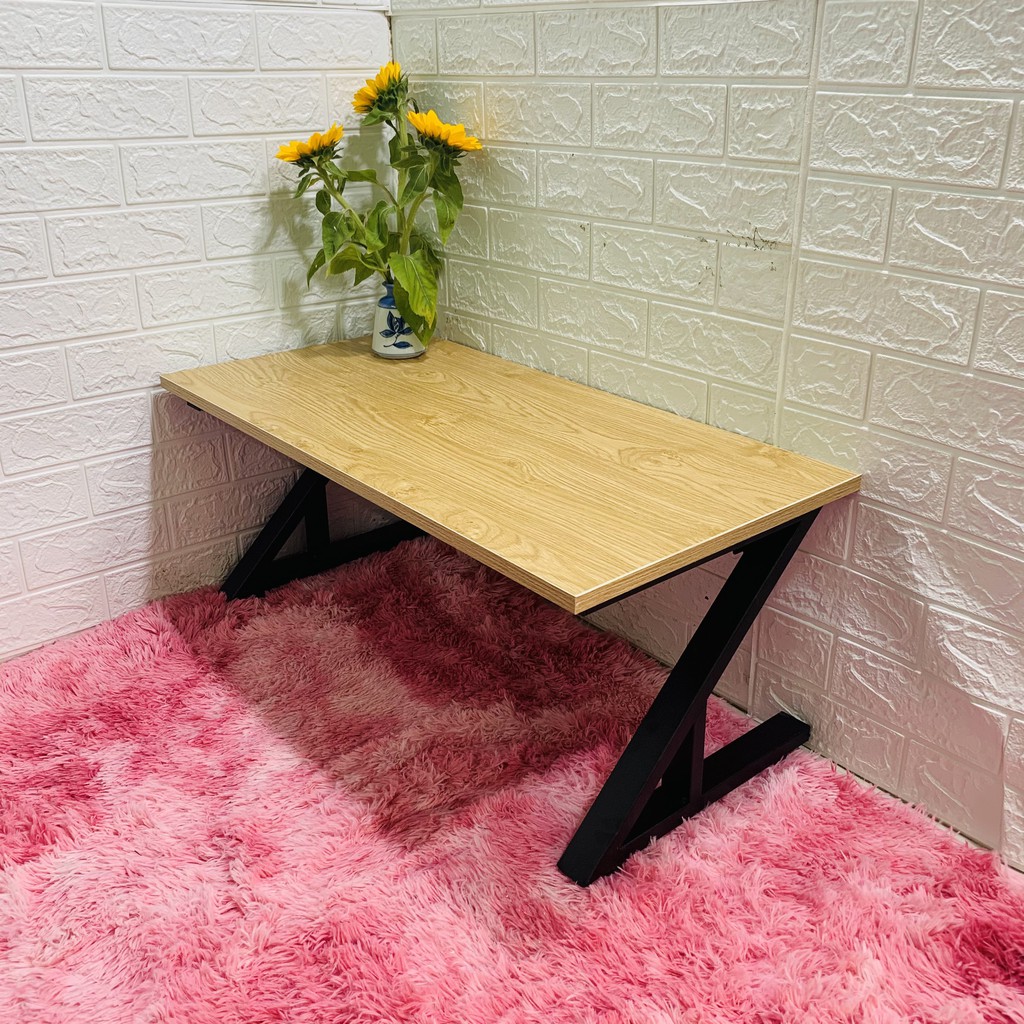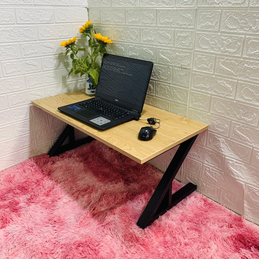 Giới thiệu Bàn làm việc (R40*D80*C35cm) chân sắt chữ Z gấp bệt {GIÁ TẠI XƯỞNG} mặt gỗ MDF NHẬP KHẨU màu vàng vân gỗ sồi dày 17mm