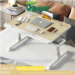 Nhà cửa & Đời sống > Nội thất > Bàn || Bàn làm việc tại nhà, Bàn học sinh gấp gọn nâng hạ có ngăn kéo hiện đại Green Furni, Vân Gỗ Vàng YVKCòn hàng