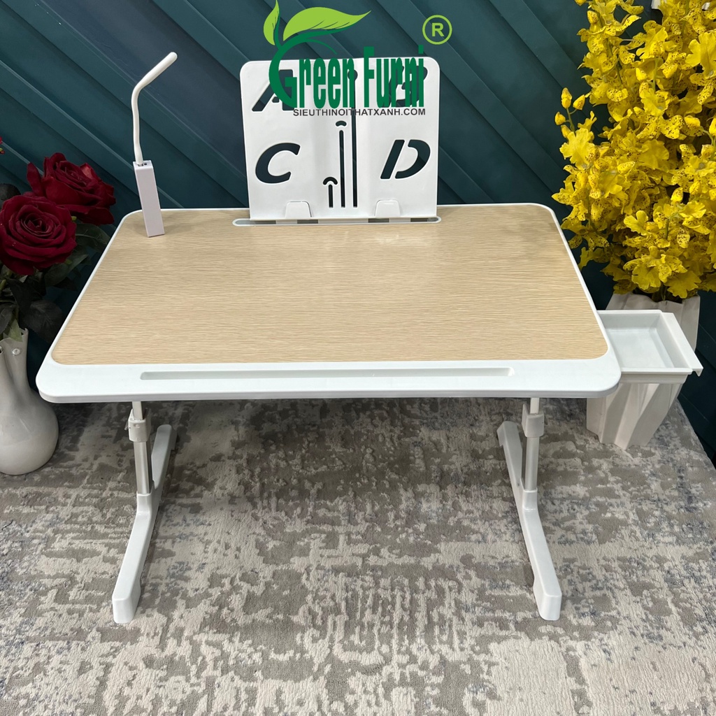Bàn làm việc tại nhà, Bàn học sinh gấp gọn nâng hạ có ngăn kéo hiện đại Green Furni, Vân Gỗ Vàng YVK
