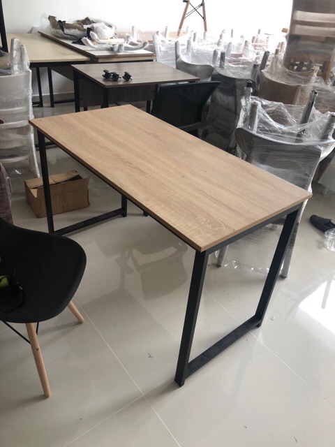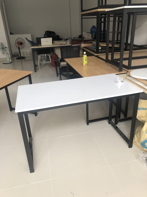 Bàn không hộc, khung chắc chắn.Chất liệu chân sắt, ván mdf chống thấm nước. Các bạn có thể xài nước vô tư.