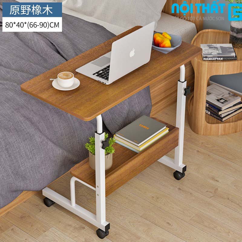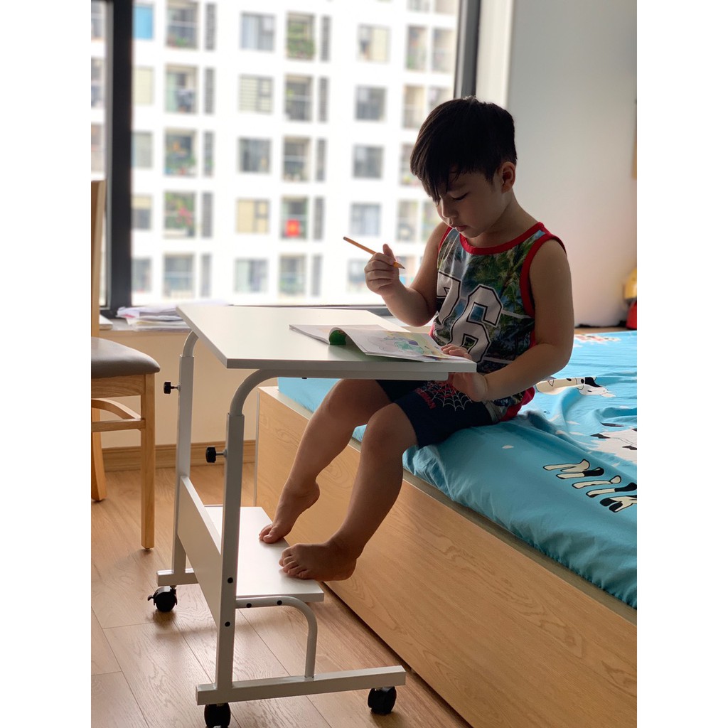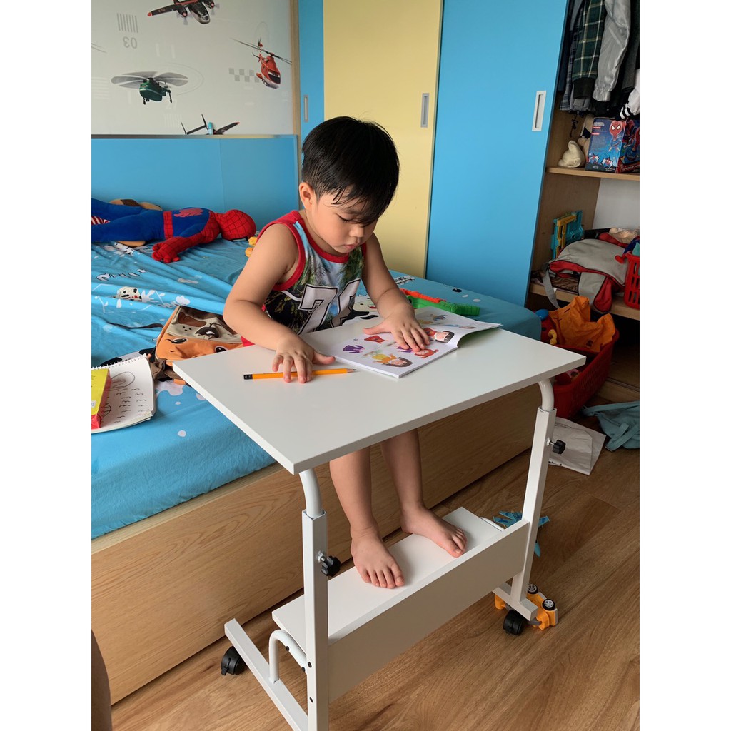 Bàn làm việc thông minh nâng hạ chiều cao và bánh xe di động có chốt cố định dùng làm bàn học bàn làm tiện lợi