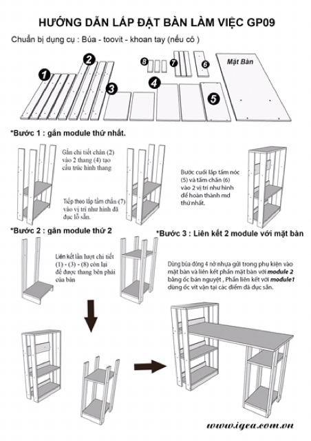 * Bạn cần tìm mẫu bàn làm việc chắc chắc dễ dàng lắp đặt