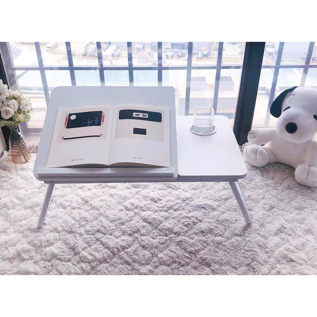 - Sản phẩm bao gồm: 1 Bàn để laptop + Đựng sách, 1 Rãnh để cốc