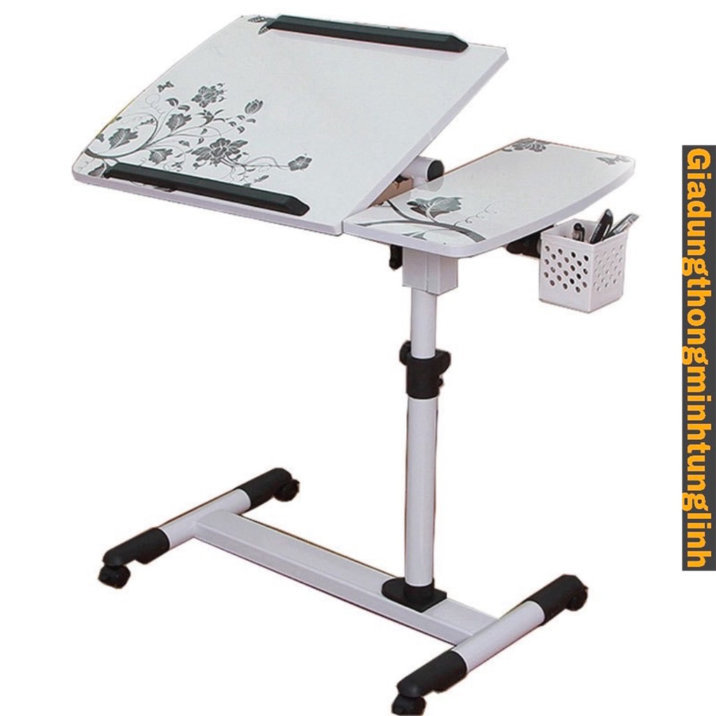 Giới thiệu Bàn Laptop Di Động Thông Minh nâng hạ chiều cao - Mặt bàn điểu chỉnh độ nghiêng kèm giỏ bút, có bánh xe di chuyển