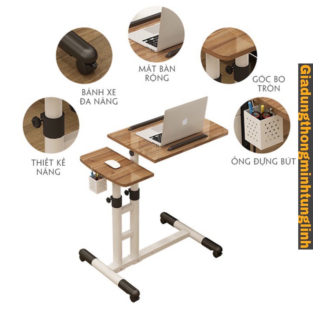Nhà cửa & Đời sống > Nội thất > Bàn || Bàn Laptop Di Động Thông Minh nâng hạ chiều cao - Mặt bàn điểu chỉnh độ nghiêng kèm giỏ bút, có bánh xe di chuyểnCòn hàng