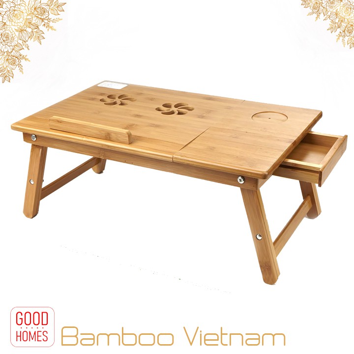 - Ngăn kéo đựng đồ: Bên cạnh bàn laptop gỗ tre đa năng Good Homes được thiết kế thêm 1 ngăn kéo để đựng đồ văn phòng hoặc phụ kiện máy tính như dây sạc điện thoại, USB, bút, tẩy, sổ ghi chép…