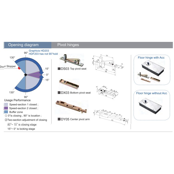 Phụ kiện bản lề sàn KINLONG với mã sản phẩm HD 205 là dòng sản phẩm chuyên dụng dành cho cửa kính, loại tự đóng bằng van thủy lực với tải trọng tối đa lên đến 130kg/cánh.