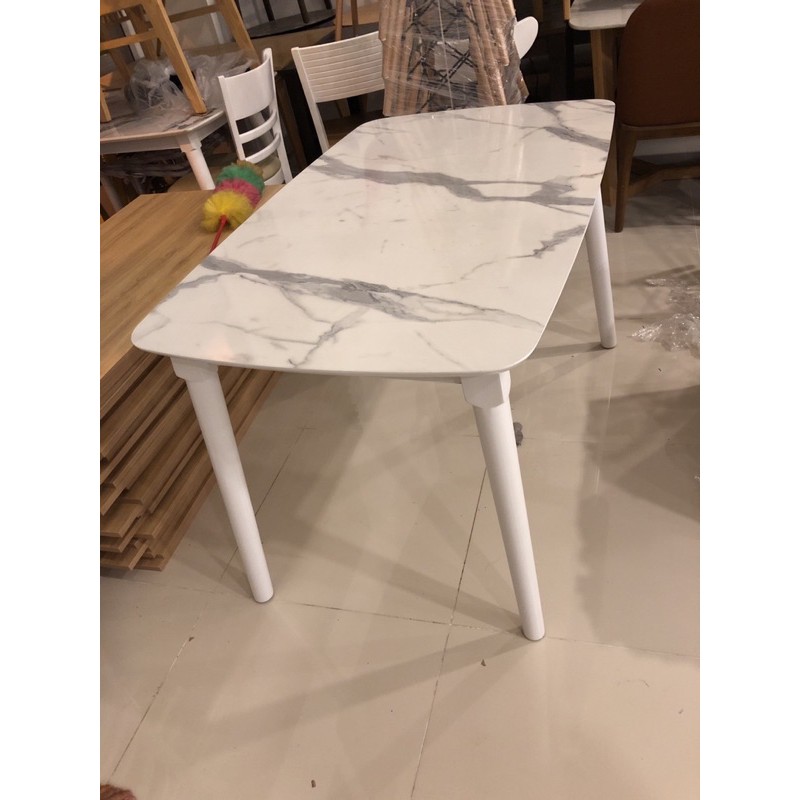 Bàn giả đá 75x120x75Chân liệu thân gỗ cao su , mặt bàn HDF phủ melamin chổng ẩm, chống thấm chịu nước tốt.