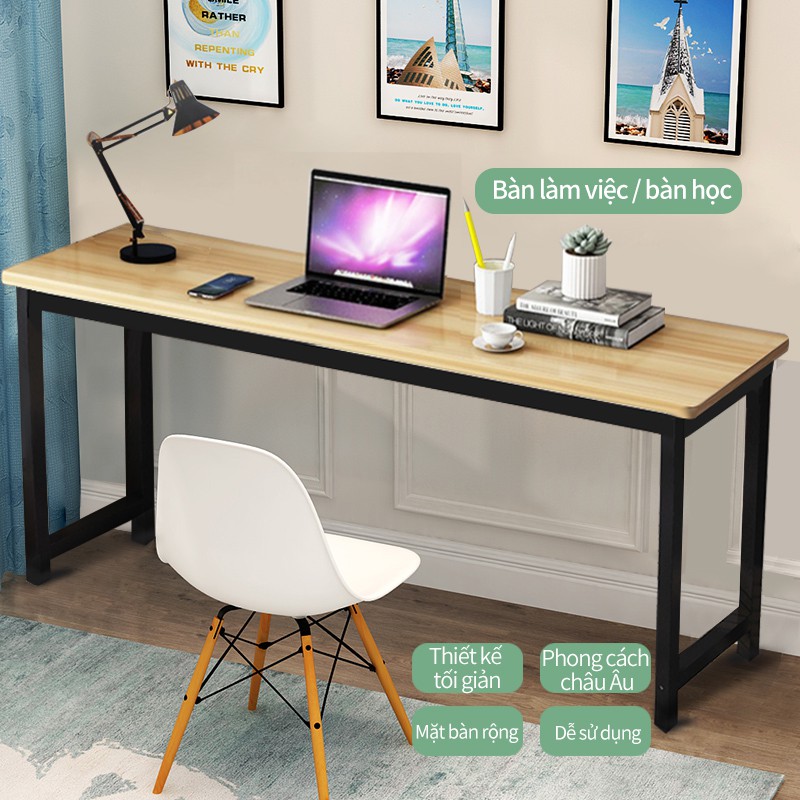 Bàn học bàn máy tính bàn làm việc tại nhà và văn phòng dáng dài kiểu Bắc Âu hiện đại đơn giảnCác góc bàn đều bo tròn để tránh gây chấn thương khi va đập