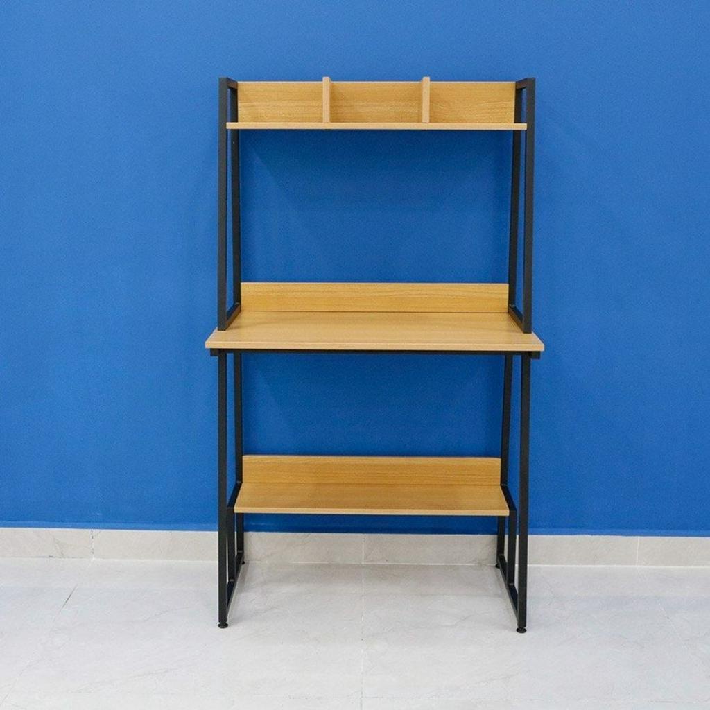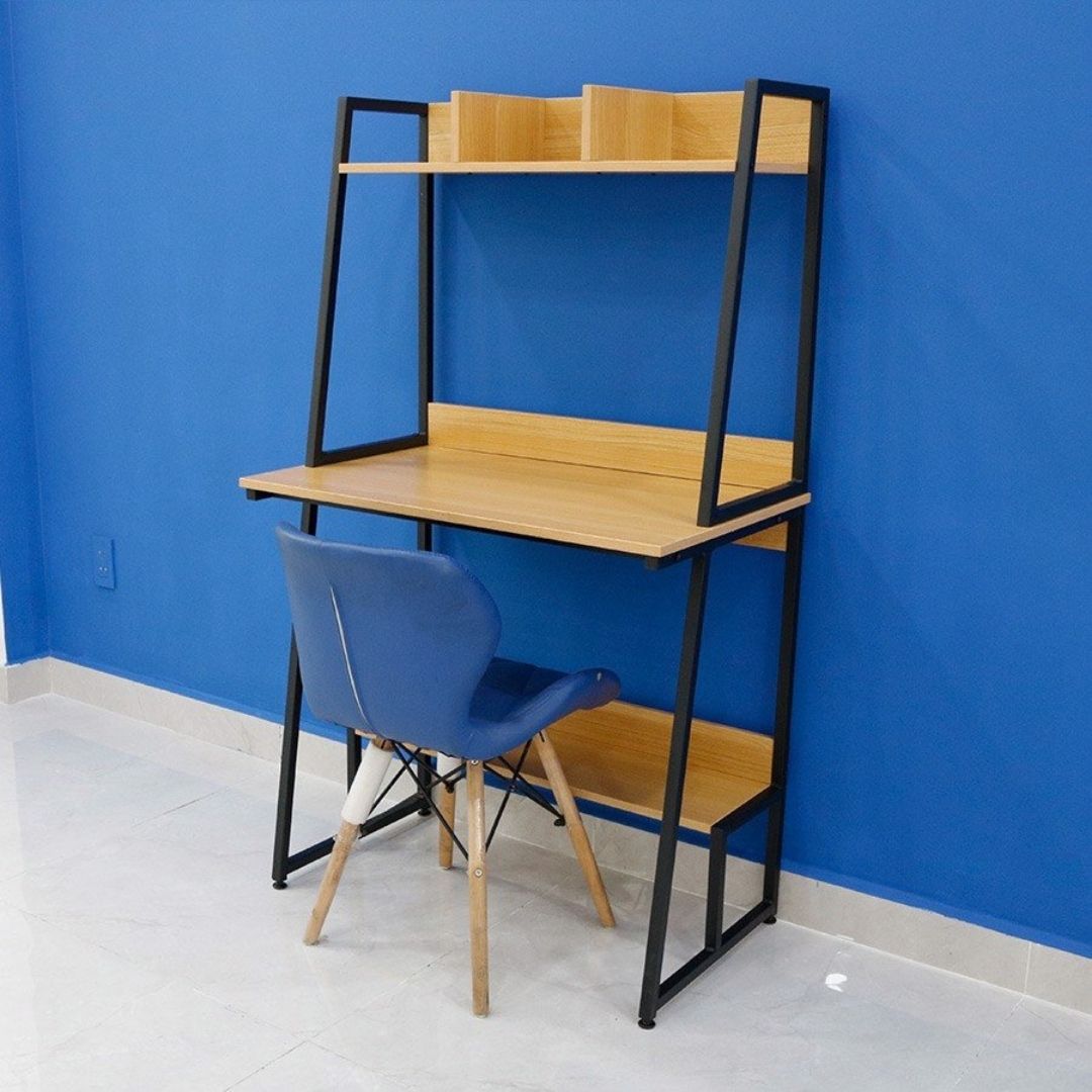 Bàn Máy Tính Chân Sắt Kèm Kệ Sách – Thiết Kế Hiện Đại, Đa DụngBàn máy tính chân sắt có kệ sách có thiết kế kiểu đứng chữ A nhỏ gọn, với kết cấu đơn giản nhưng hiệu quả trong công năng, phù hợp cho mọi không gian sống kể cả chật hẹp nhất. Sản phẩm được làm từ chất liệu gỗ MDF và khung sắt không gỉ chắc chắn. Đây sẽ là một dạng nội thất đa năng bạn có thể sử dụng để làm bàn vi tính, bàn học, bàn làm việc…