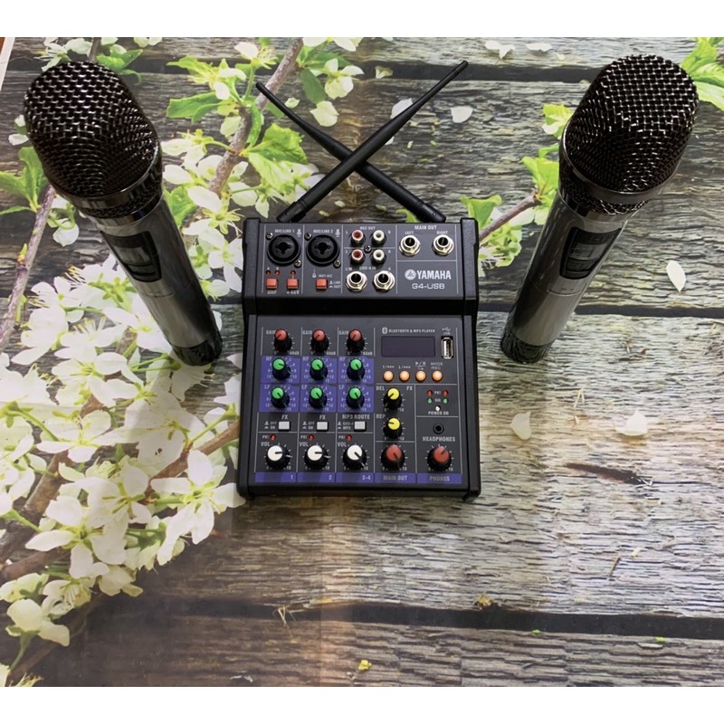 – Ưu điểm thứ 2 là Mixer Yamaha G4 tích hợp đầu thu không dây lại kèm theo 2 tay micro không chất lượng tốt sử dụng hát livestream âm thanh khá hay và đôi khi muốn đấu loa kéo hay amply gia đình để hát to ra ngoài đều khá hay ( chủ yếu dùng để livestream nhé các bác đấu ra loa ngoài sẽ không hay bằng livestream )