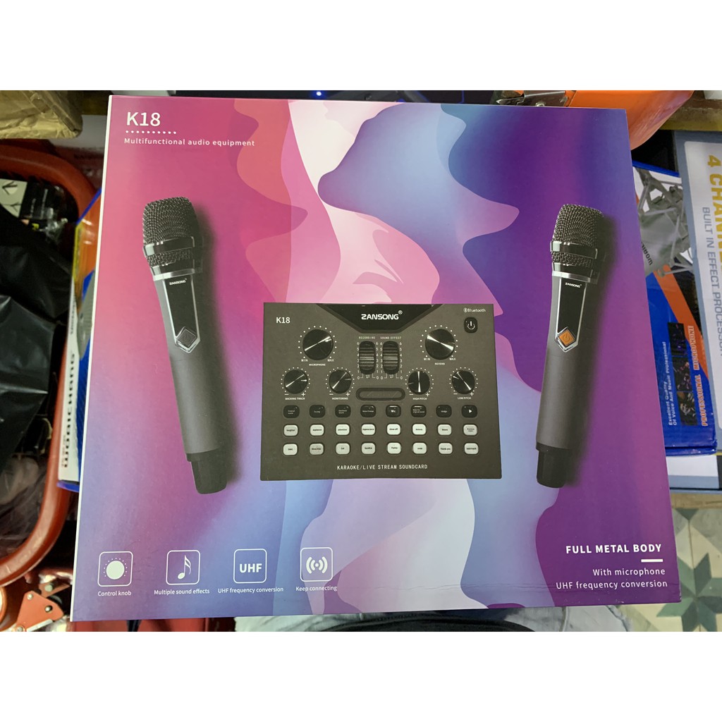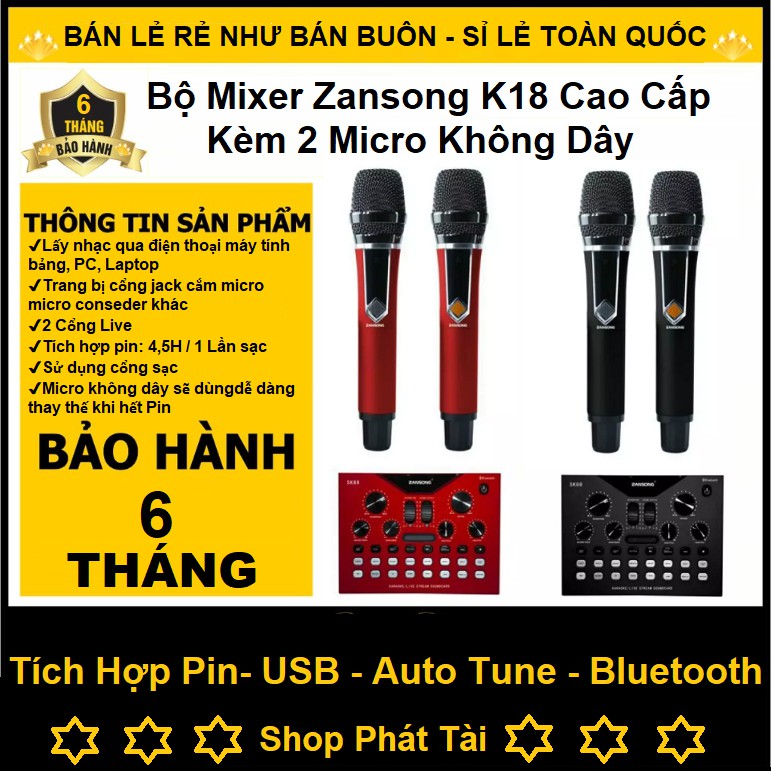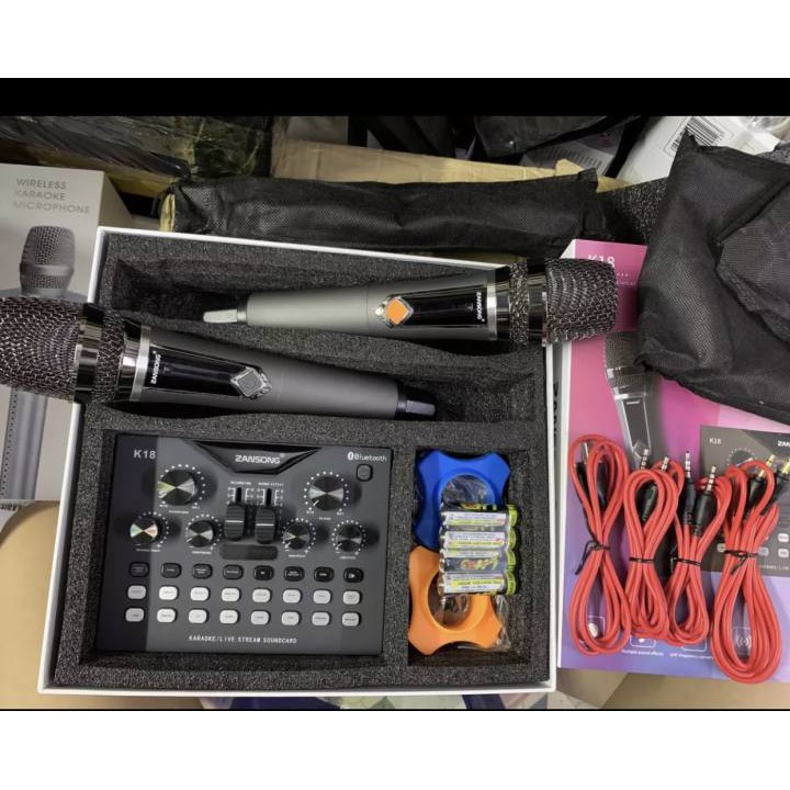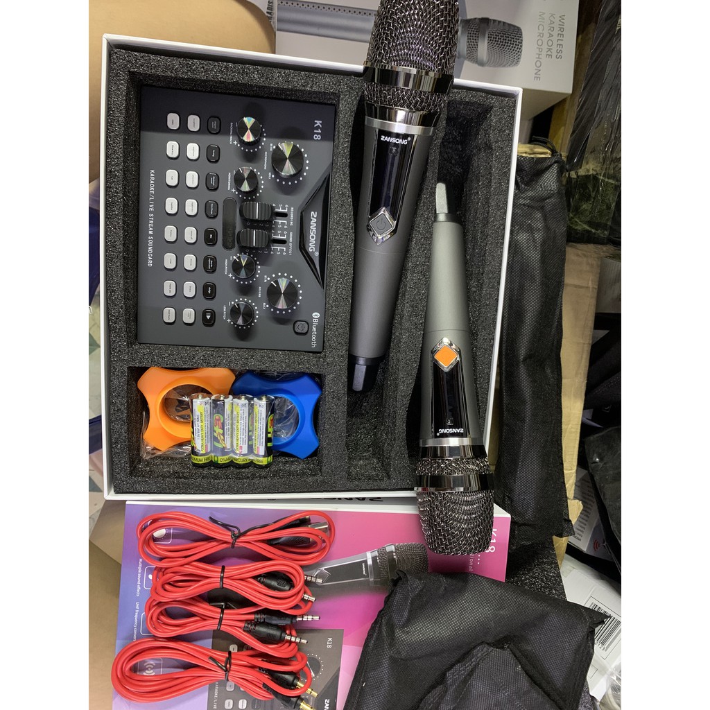 Bàn Mixer Zansong K18 ( Mixer G4 bản nâng cấp ) kèm 2 micro cực hay dùng cho loa kéo amply và thu âm livestreamSoundCard Zansong K18
