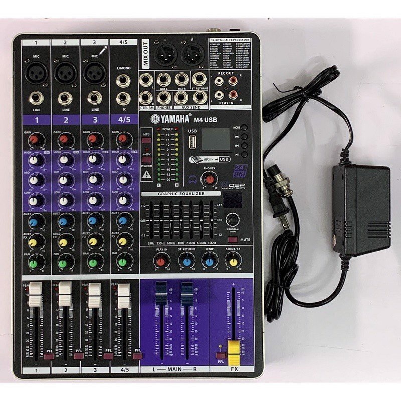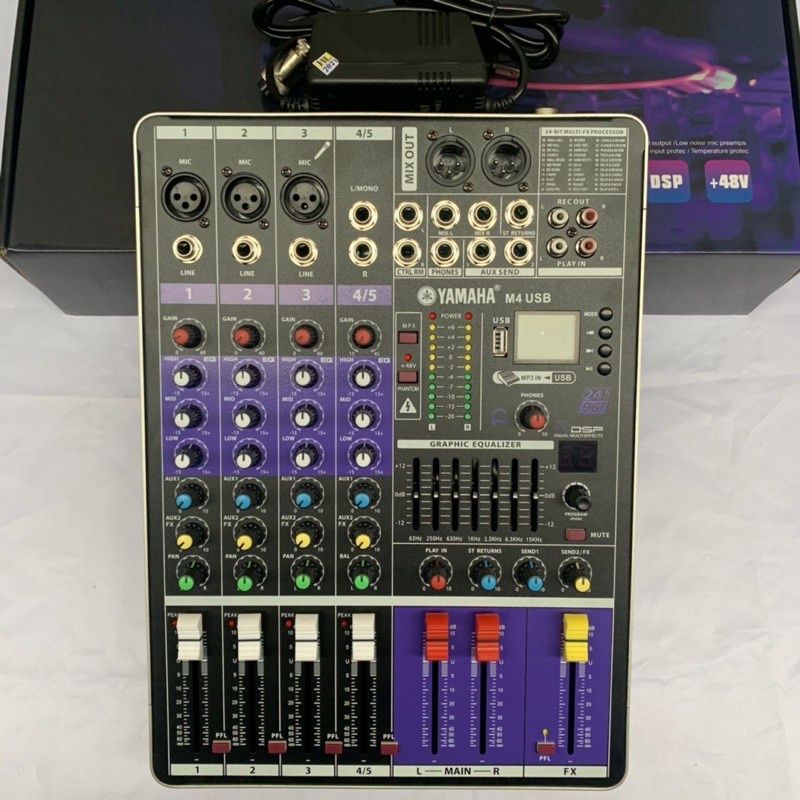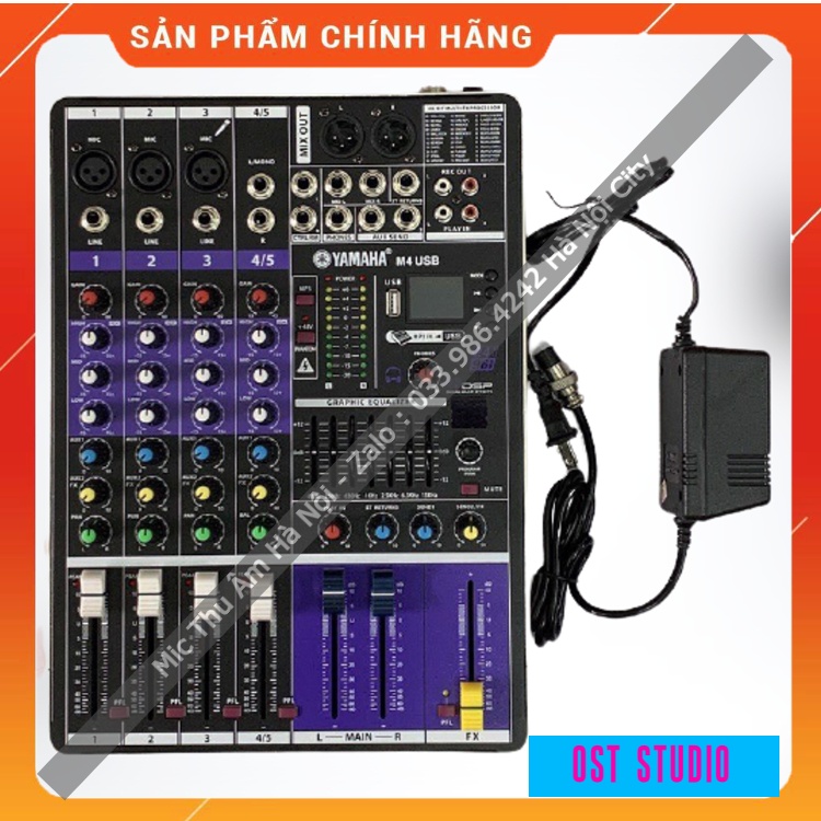 👉 Mixer M4 USB đa năng này hỗ trợ cực kỳ hiệu quả, với bộ Effect tích hợp tới 99 hiệu ứng Echo, Reverb cực bay và mượt mà, tích hợp Equalizer, Bluetooth phát nhạc không dây, nguồn phantom 48+V kết nối với micro thu âm.