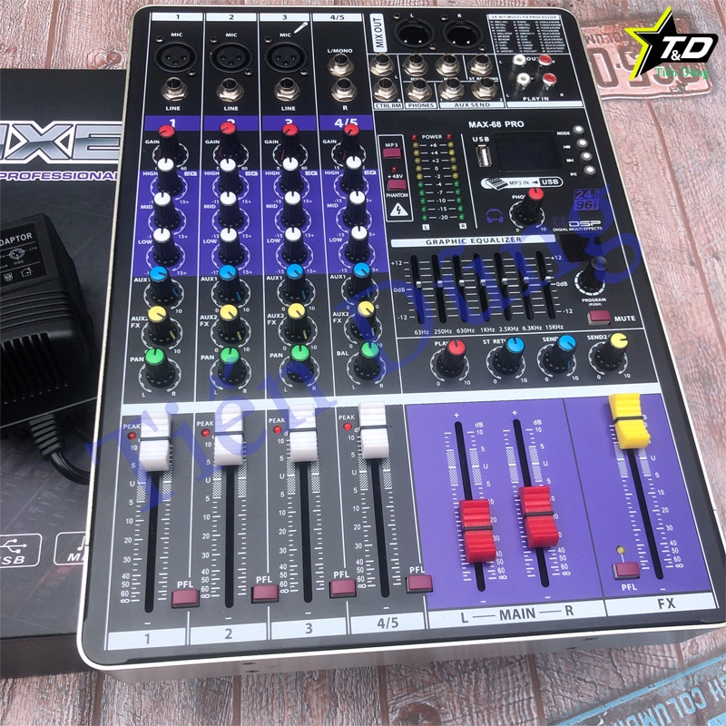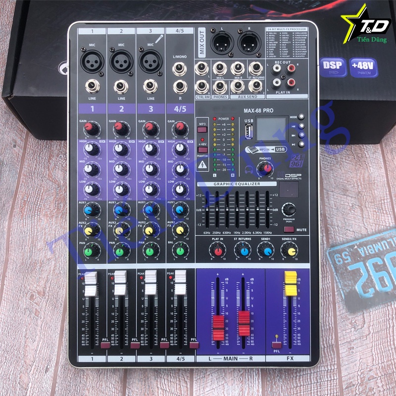Bàn Mixer MAX 68 Pro Có 99 Hiệu Ứng Hỗ Trợ Bluetooth USB Chạy Cho Các Dòng Mic 5v - 48V Và Tương Đương Mixer M4