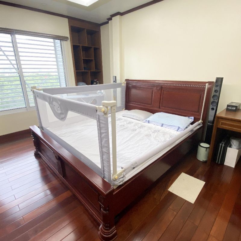 ✌🏻Thanh chắn giường Umoo lắp ghép dễ dàng trong vòng 1 nốt nhạc, có thể nâng hạ độ cao của thanh chắn và kéo lên xuống tấm vải chắn.