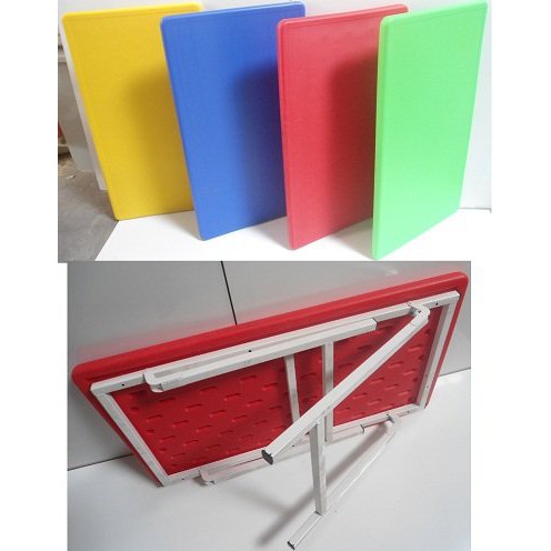 -Chất liệu: mặt bàn bằng nhựa cao cấp 2 lớp, chân bàn bằng sắt sơn tĩnh điện, gấp lại được