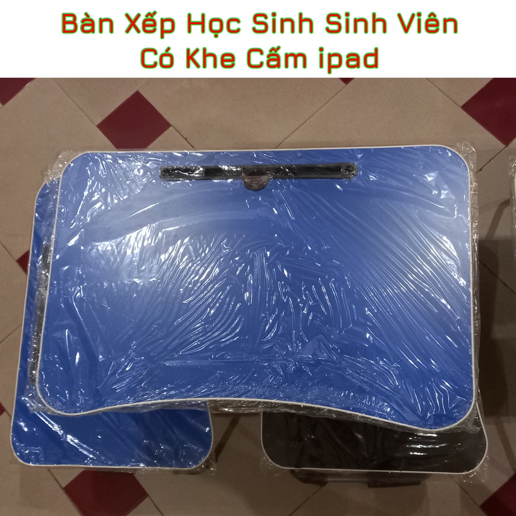 Nhà cửa & Đời sống > Nội thất > Bàn || Bàn nhựa xếp học sinh đa năng chân sắt, bàn xếp gấp gọn có khe cấm ipad ( Kích thước 40x60x30cm )Còn hàng