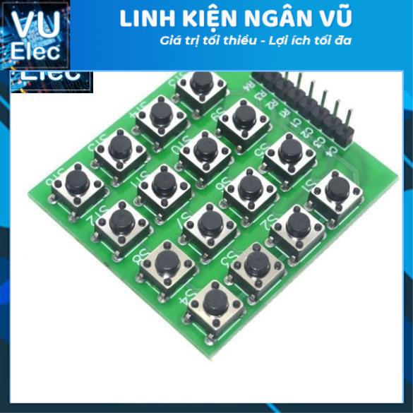 Ma trận phím 4×4 gồm có 16 nút bấm được sắp xếp theo ma trận 4 hàng, 4 cột. Các nút bấm trong cùng một hàng và một cột được nối với nhau, vì vậy ma trận phím 4×4 sẽ có tổng cộng 8 ngõ ra. Ma trận phím 4×4 cho phép các bạn nhập các chữ số, chữ cái, ký hiệu vào bộ điều khiển qua đó dùng để điều khiển một thiết bị ngoại vi nào đó. Các bạn có thể mắc thêm trở treo (thông thường là 10K) cho các nút bấm để nút bấm hoạt động ổn định hơn.