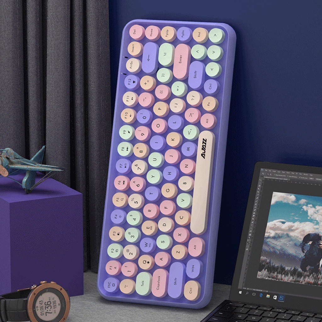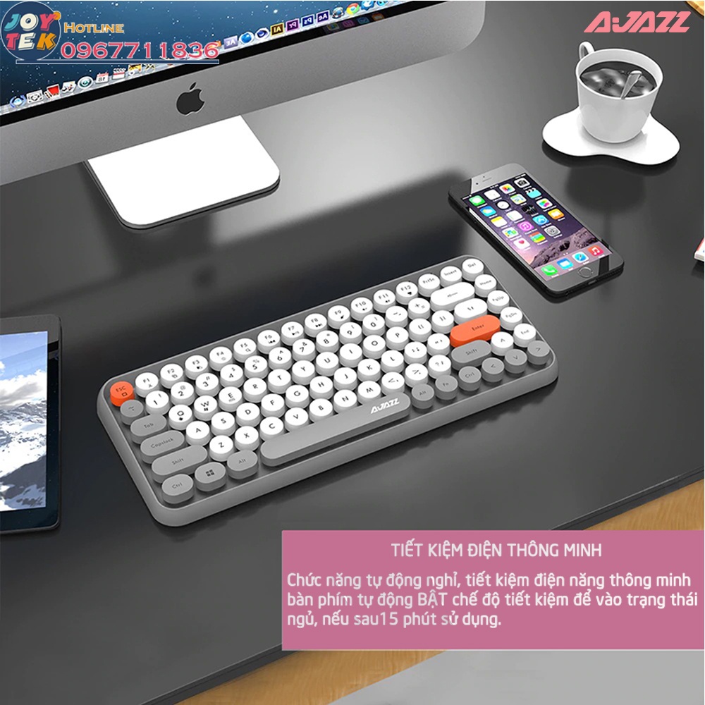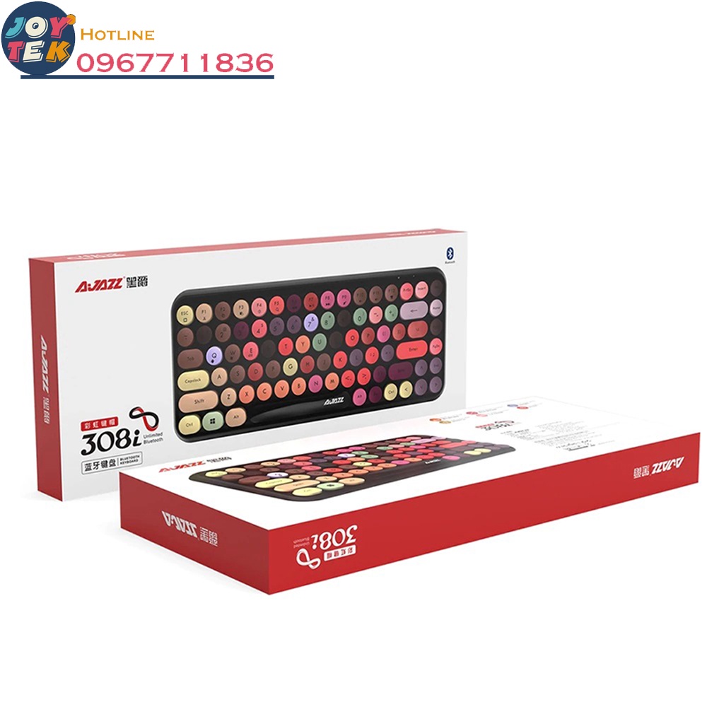 BÀN PHÍM AJAZZ 308i là BÀN PHÍM KHÔNG DÂY BLUETOOTH cho điện thoại , bàn phím cho ipad , làm bàn phím cho laptop và macbook kiểu dáng mini.BÀN PHÍM KHÔNG DÂY AJAZZ 308i siêu dễ thương, nhiều màu sắc tương thích với các hệ điều hành khác nhau và kết nối bluetooth 3.0 không dây 10m kết nối ổn định, rất tiện lợi để sử dụng. Thiết kế nhỏ gọn, thiết kế phím cổ điển và phong cách sành điệu giúp bạn thêm sành điệu và độc đáo, khiến góc học tập và làm việc của bạn phong cách hơn.