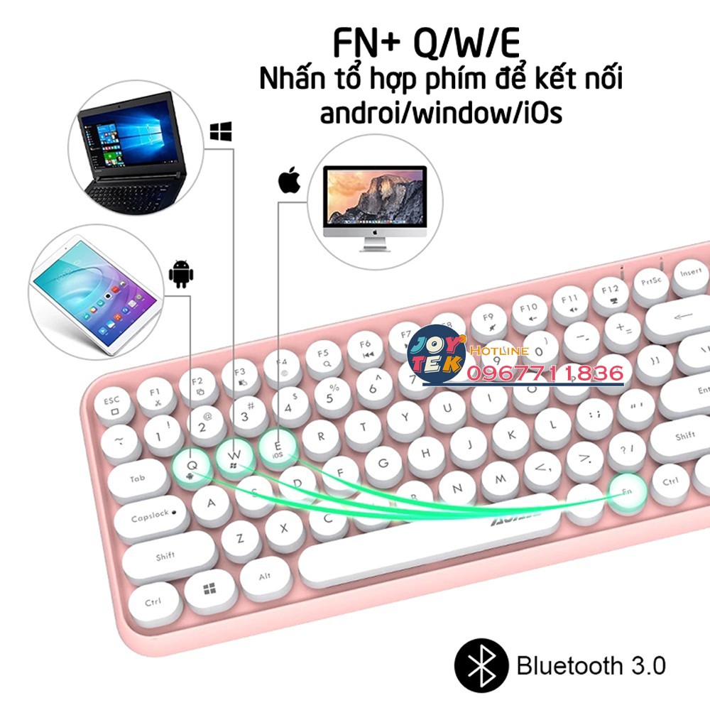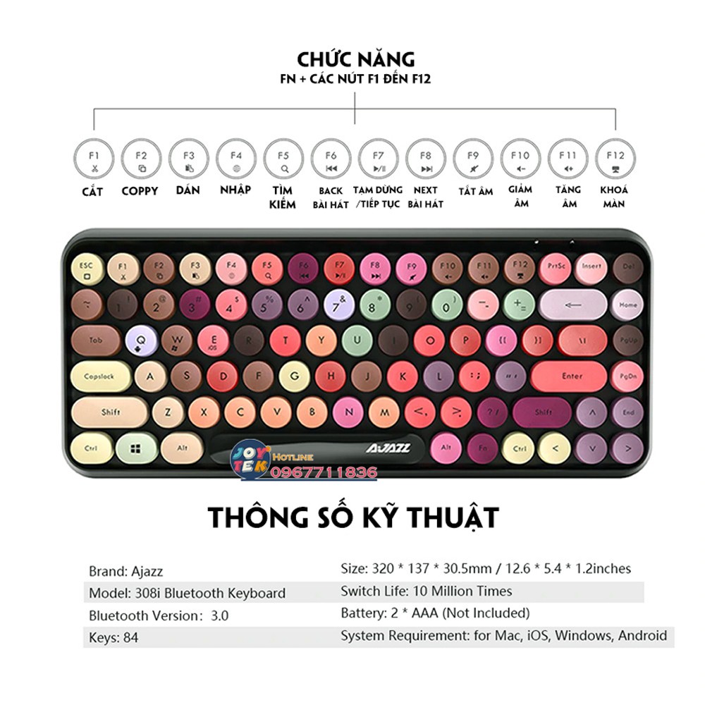 BÀN PHÍM KHÔNG DÂY AJAZZ 308i siêu dễ thương, nhiều màu sắc tương thích với các hệ điều hành khác nhau và kết nối bluetooth 3.0 không dây 10m kết nối ổn định, rất tiện lợi để sử dụng. Thiết kế nhỏ gọn, thiết kế phím cổ điển và phong cách sành điệu giúp bạn thêm sành điệu và độc đáo, khiến góc học tập và làm việc của bạn phong cách hơn.