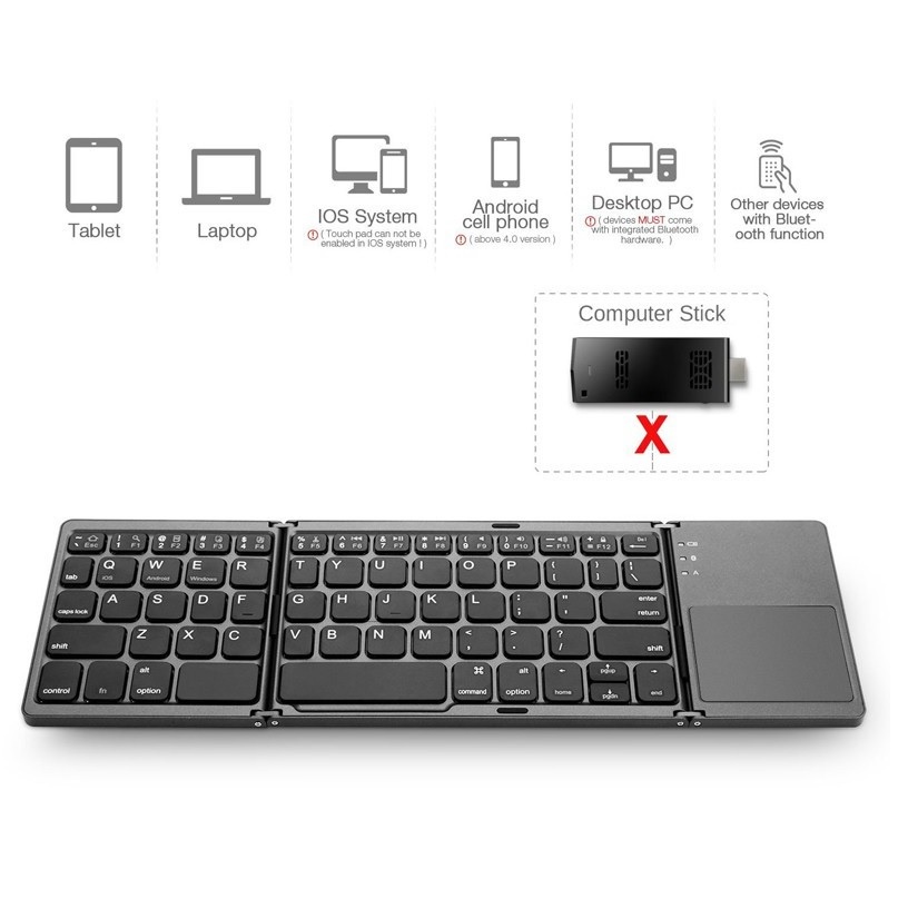 Máy tính & Laptop > Chuột & Bàn Phím > Bàn Phím Máy Tính || Bàn Phím B033 - Bàn Phím Không Dây Mini Gấp Gọn Bluetooth Tích Hợp TouchpadCòn hàng
