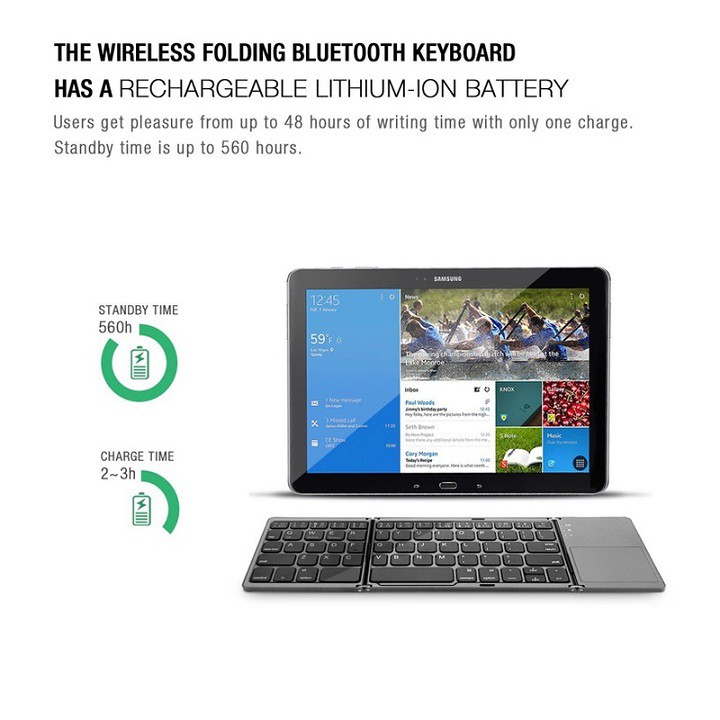 Bàn Phím Không Dây Mini Gấp Gọn Bluetooth Tích Hợp Touchpad B033Thông tin kỹ thuật