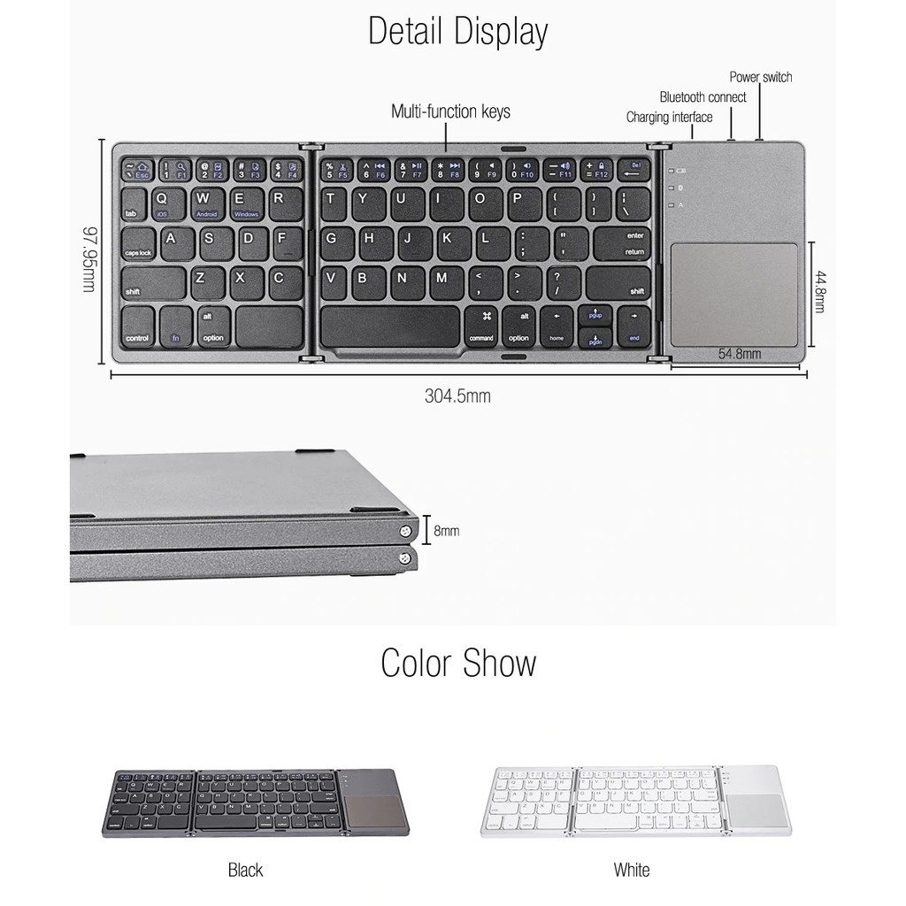 Bàn Phím B033 - Bàn Phím Không Dây Mini Gấp Gọn Bluetooth Tích Hợp Touchpad