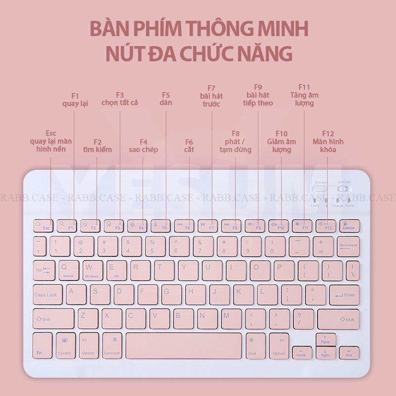 + Bàn phím Bluetooth: Phím vuông, sử dụng pin sạc, có thể kết nối được với tất cả các thiết bị có hỗ trợ Bluetooth