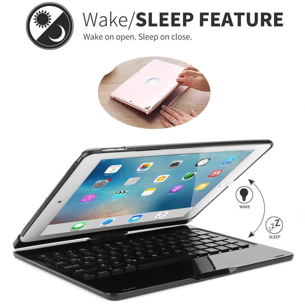 -Vỏ bảo vệ bàn phím của iPad Pro của sản phẩm có xoay 360 độ theo hướng ngang, giúp cho việc xem thuận tiện và linh hoạt hơn. Có nắp đậy trong suốt được che trong lỗ được cung cấp cho logo iPad đóng vai trò chống bụi và trông phong cách hơn.
