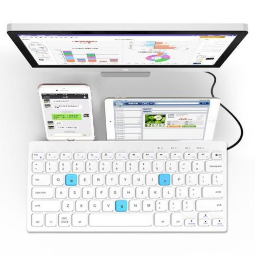 - Bàn phím bluetooth không dây BOW HB191A có thể kết nối 2 thiết bị thông qua Bluetooth và kết nối một thiết bị thông qua cáp USB, liên màn hình gõ trong số 3 thiết bị cùng lúc.