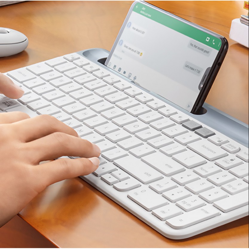 Bàn phím K580 có thể làm việc cùng lúc với điện thoại và máy tính bảng của bạn. Nút bấm Easy Switch giúp bạn chuyển đổi giữa 2 thiết bị. Bạn có thể báo cáo trên máy tính rồi chuyển qua nhắn tin trên điện thoại mà bạn đặt ngay trên khe đỡ của bàn phím. THẬT TUYỆT VỜI!!!!