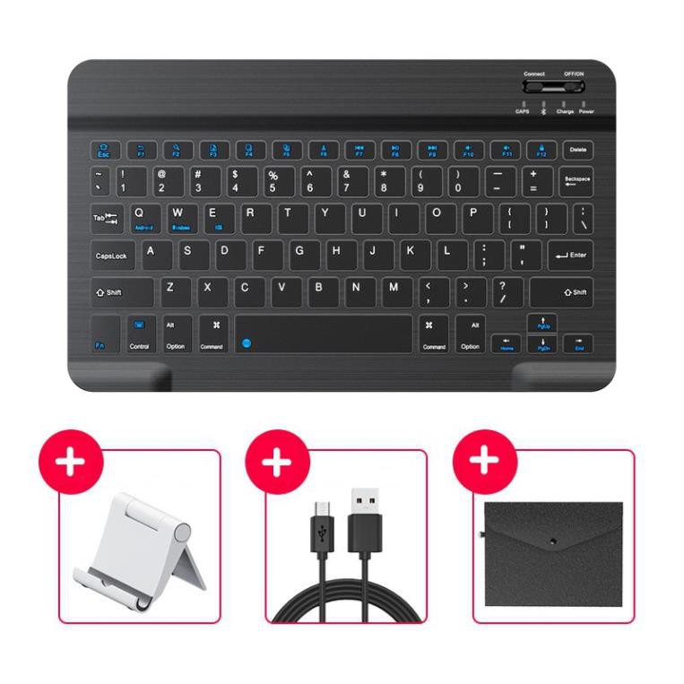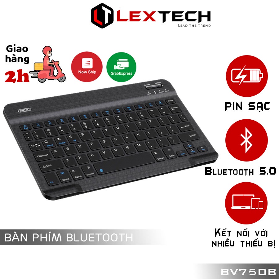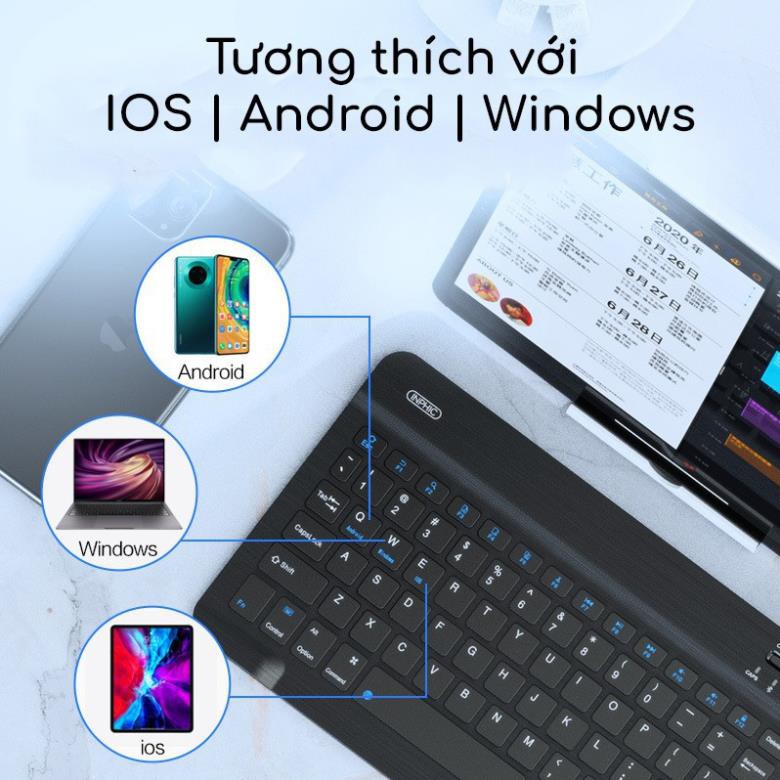 Bàn phím bluetooth sạc lại cao cấp Inphic V750B cho ipad android windows - Kết nối 2 thiết bị kèm bao đựng giá đỡ