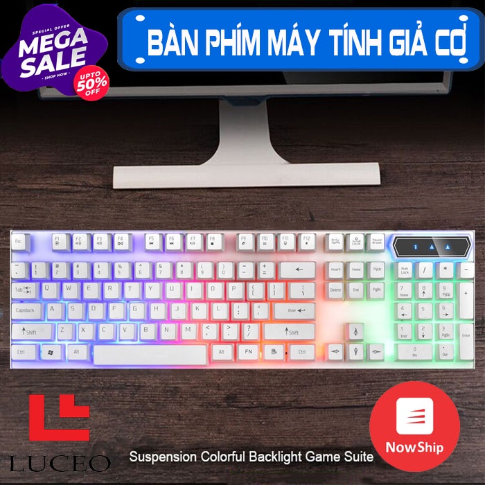 Bàn phím chơi game giả cơ có đèn led cho văn phòng và dân game