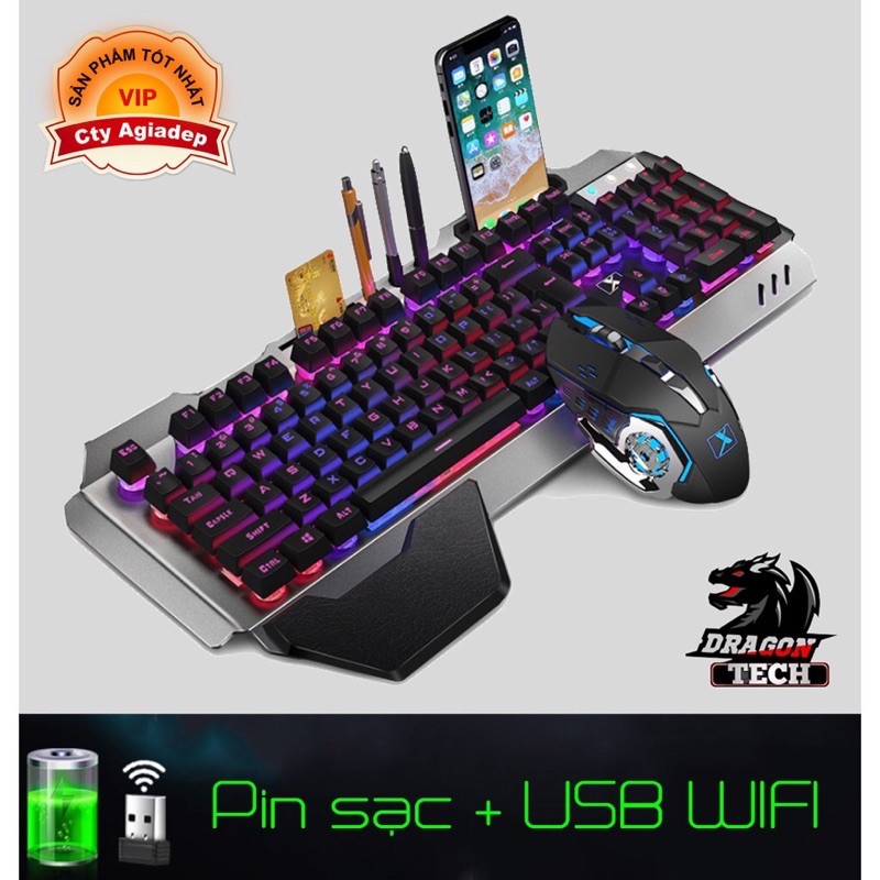 Bộ Bàn Phím Chuột có ánh sáng wireless - Sạc pin được siêu xịn game thủ của TechDragon
