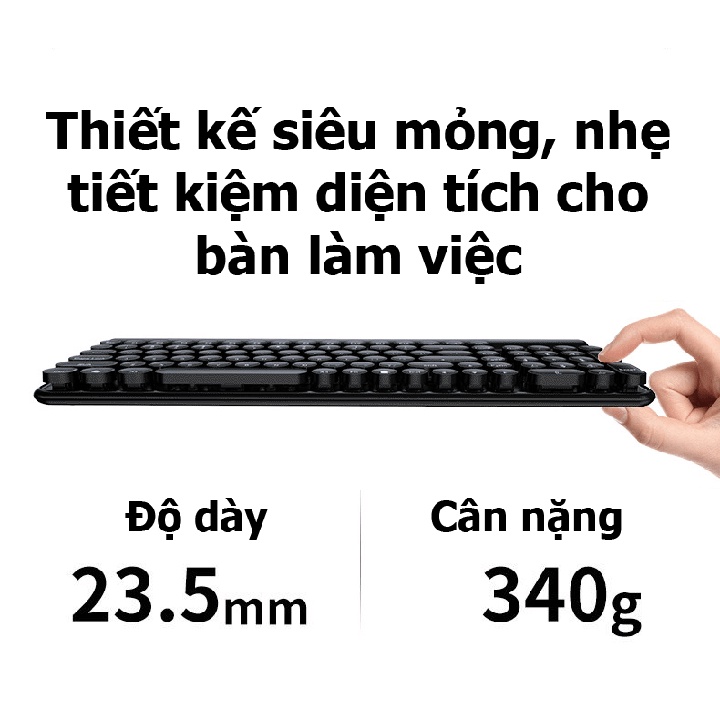 Bàn phím thiết kế kiểu cổ điển nhưng vẫn mang sự trẻ trung, mới lạLàm bằng nhựa ABS chắc chắn, tuổi thọ phím dài